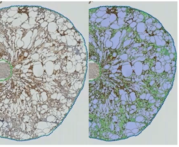 NovAliX, a French CRO, established a PKD1-inducible knockout mouse strain to to enable targeted research. Using Discovery, they can accurately and reproducibly quantify cysts, vessels, and fibrosis in the model over time with advanced tissue segmentation workflows. The accurate measurements help not only to study disease progression but also evaluate therapeutic approaches.
