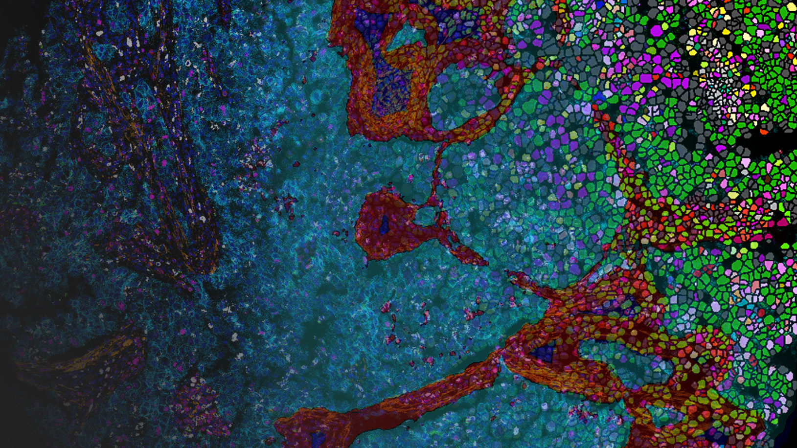 Use the pre-trained cell detection for accurate and robust identification of cells. Train the system to separate your different tissue regions for better spatial biology data.