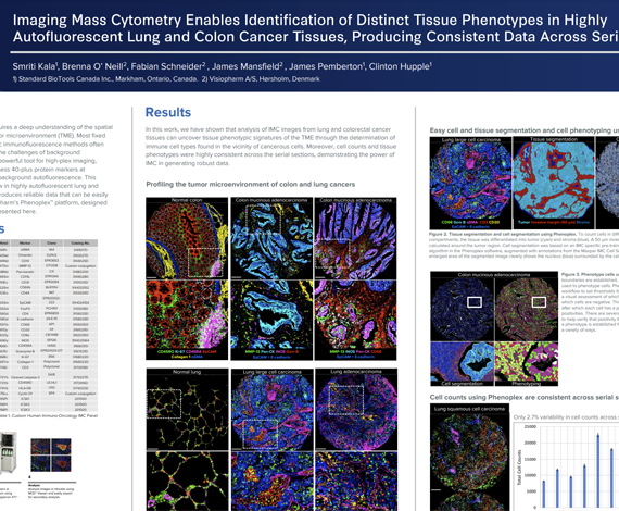Successful implementation of immunotherapy requires a deep understanding of the spatial interactions between various cell types in the tumor microenvironment (TME). Most fixed tissues are autofluorescent and staining with cyclic immunofluorescence methods often produces data that are difficult to analyze due to the challenges of background subtraction. Imaging Mass Cytometry™ (IMC™) is a powerful tool for high-plex imaging, utilizing CyTOF® technology to simultaneously assess 40-plus protein markers at subcellular resolution without spectral overlap or background autofluorescence. This study demonstrates a tissue phenotyping workflow in highly autofluorescent lung and colon cancer tissues using high-plex IMC, which produces reliable data that can be easily analyzed.