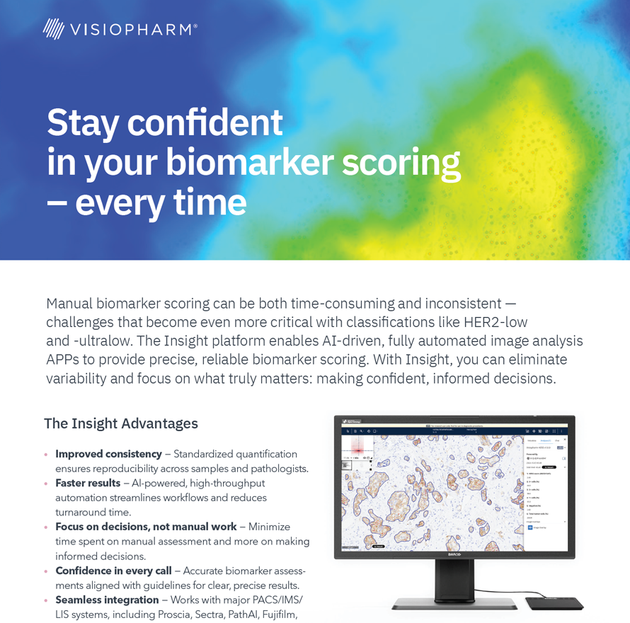 Manual biomarker scoring can be both time-consuming and inconsistent — challenges that become even more critical with classifications like HER2-low and -ultralow. The Insight platform enables AI-driven, fully automated image analysis APPs to provide precise, reliable biomarker scoring. With Insight, you can eliminate variability and focus on what truly matters: making confident, informed decisions.
